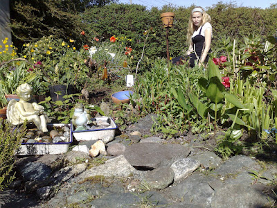 My two garden angles and a frog waiting for a kiss to turn into the prince on a white horse.